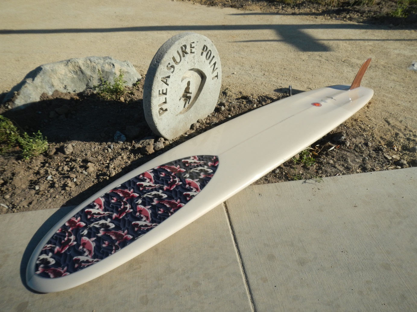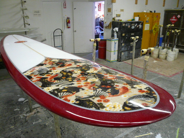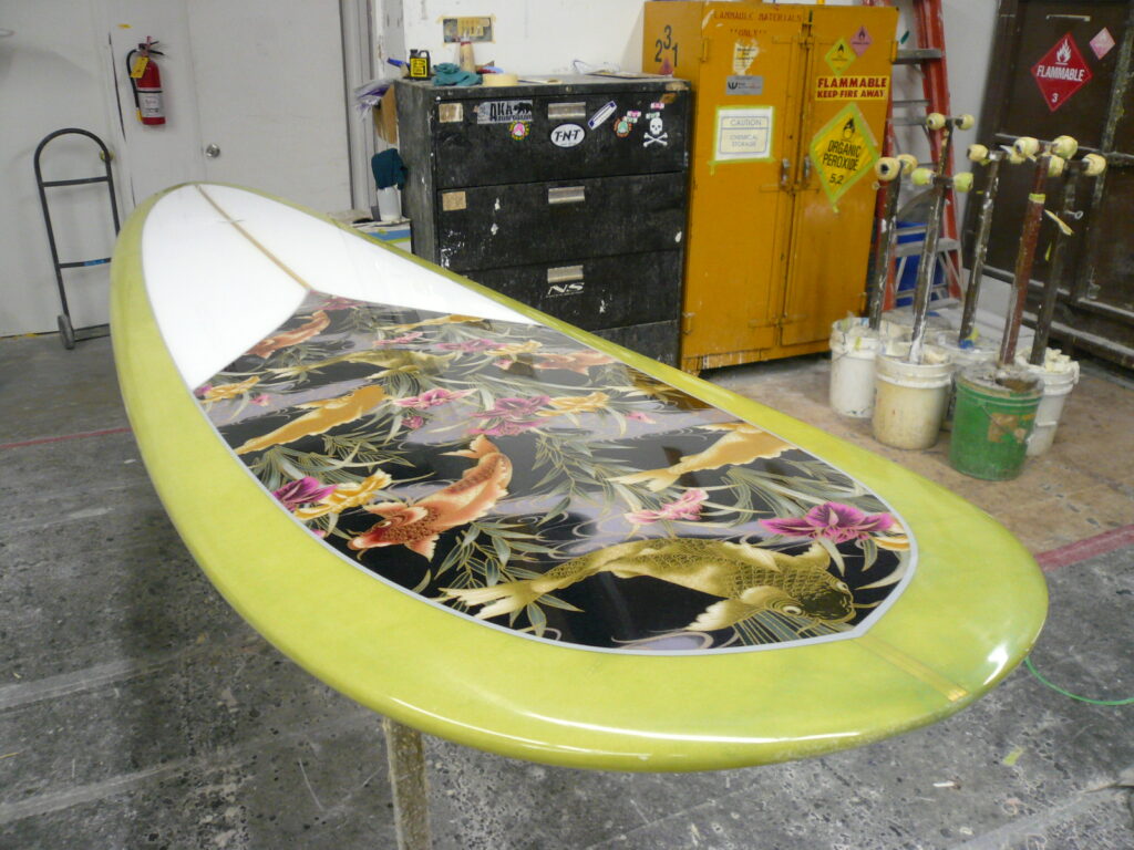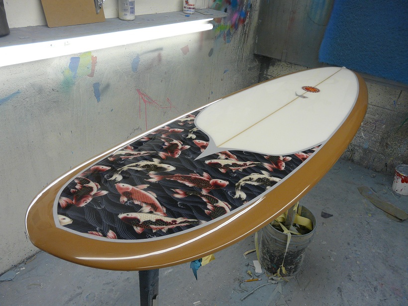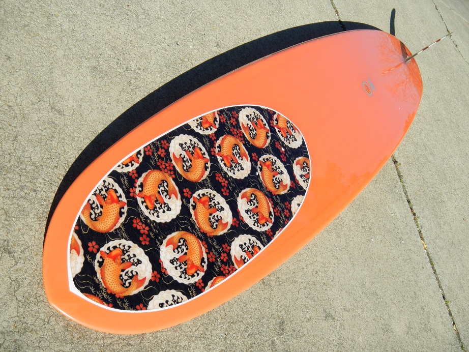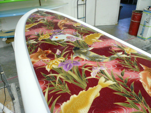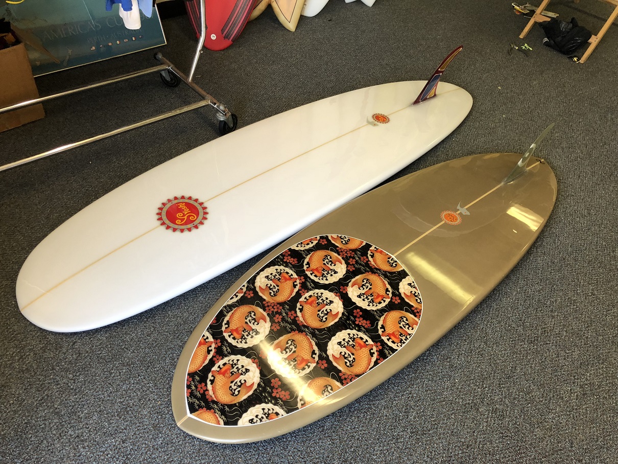 100年以上前、ハワイに移民した日系移民が持参した着物地をローカルの貝のボタンでシャツに仕上げたのがハワイアンシャツの起源とされています。サーフィン発祥の地であるハワイでローカルに愛されてきたシャツに使われた日本の伝統的なデザインである和柄を大胆にサーフボードに採用してみました。ビンテージで スタイリッシュなシェープとは抜群の相性です。ご自身のお気に入りの生地をサーブボードにあしらう事で本当の意味で世界に一本のオリジナルボードが完成します。詳細は是非お問い合わせください。