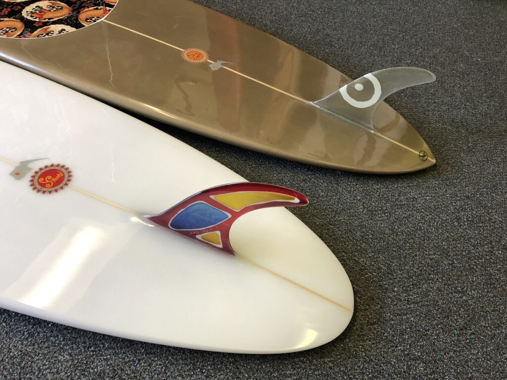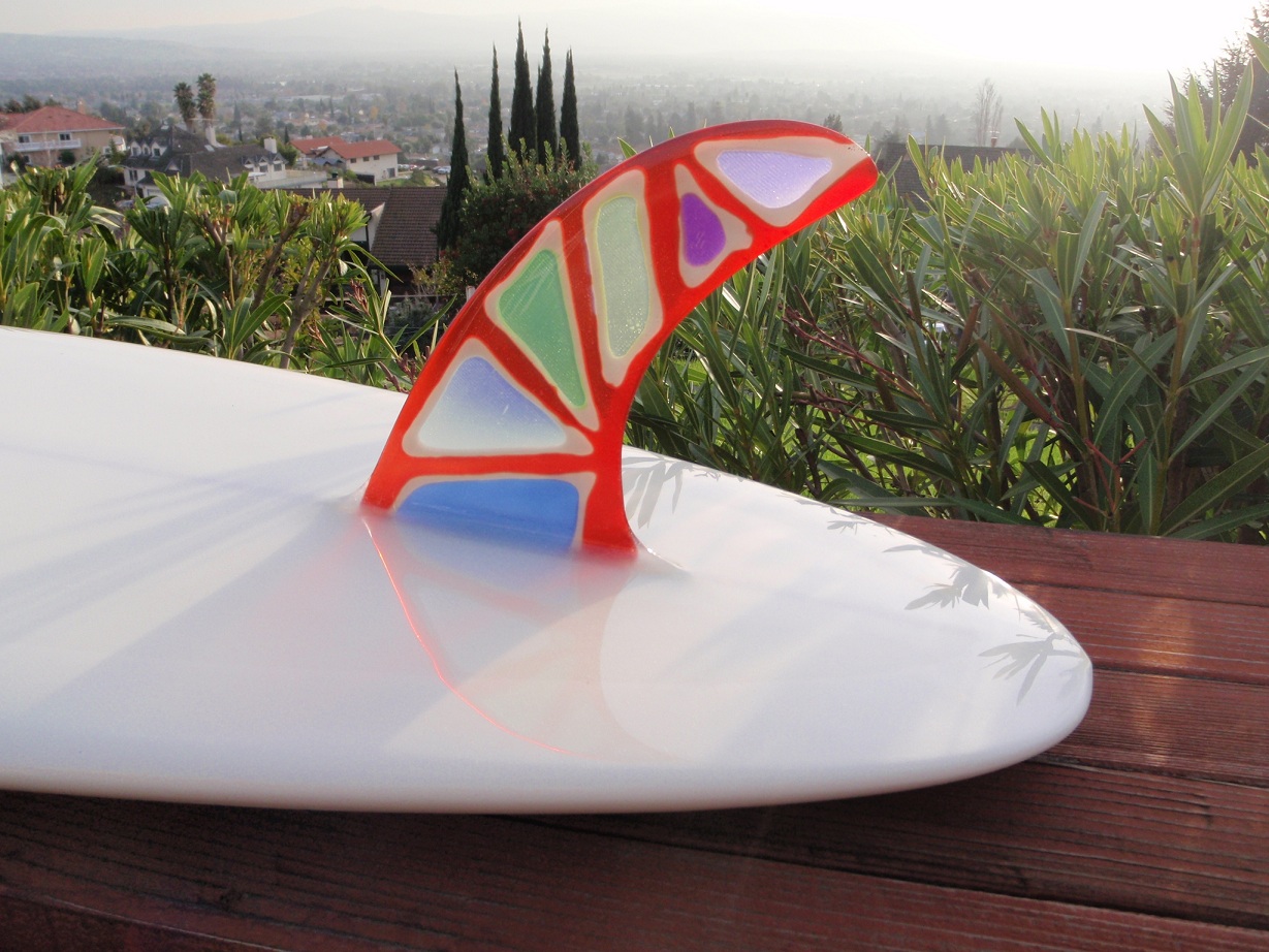 北カリフォルニアを代表するSURFBOARD FIN COMPANYであるRAINBOW FIN CO.,と提携し同社のオリジナルであるカスタムデザインのステンドグラスFINの製作を承っています。
